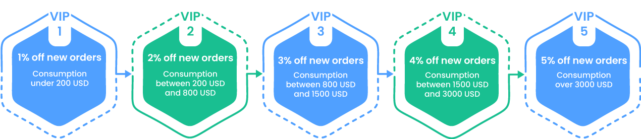 Member level is determined by your total consumption, dictating the discount rate applied at check out.