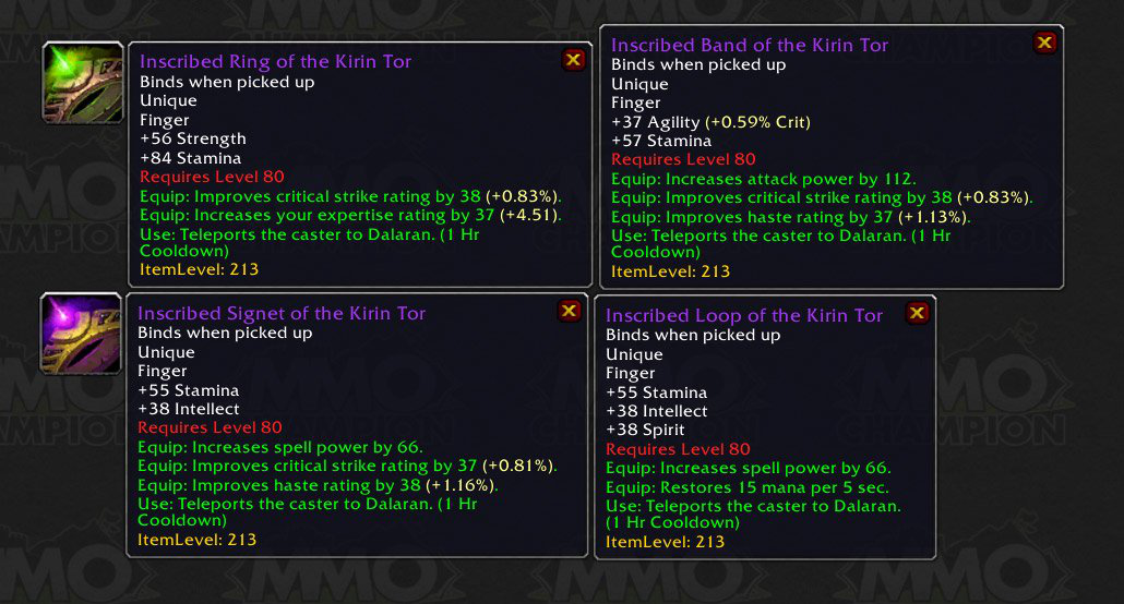 Then the 'Ring of the Kirin Tor' in Dalaran basic price is 8500G, each upgrade cost 1250 G, Total cost 12250G.