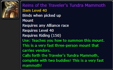 In order to facilitate repair and supply at any time, many players also choose to purchase a 'Reins of the Traveler's Tundra Mammoth', it costs 30,000G.