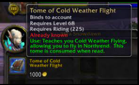 First, we need to buy 'Tome of Cold Weather Flight', its price tag is 1000G