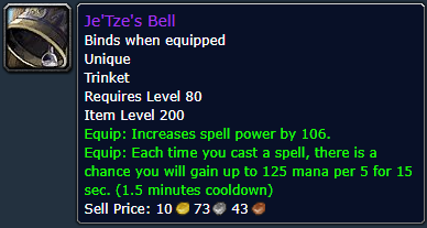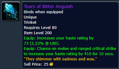 This is a extraordinary binds when equipped trinket, good for all the DPS, this is the most expensive binds when equipped, it cost lot of gold.