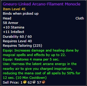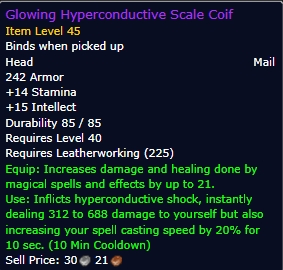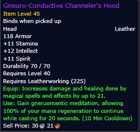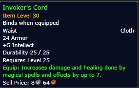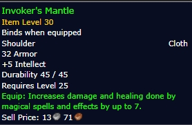 You can wear both pieces of cloth armor at level 25! Together, they add 10 Intelligence and 14 spell damage or healing! I'll put them up for auction and make a fortune!