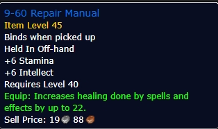 Among the off-hand weapons, the 9-60 Repair Manual will be highly sought after by casters. The Shoni's Dismantling Tool is PvP invincible for dual-wielding melee, as it can disarm opponents indefinitely.