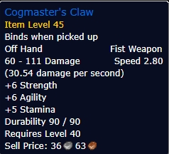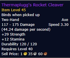 Shamans can use Thermaplugg's Rocket Cleaver, which deals up to 44 damage per second! It also has 29 strength. Its drawback is its 2.7 attack speed, which might be a bit fast for warriors and paladins.However, Enhancement Shamans will definitely love it.