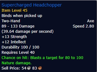 Additionally, there's the Supercharged Headchopper, which provides both strength and intellect attributes and is explicitly designed for Enhancement Shamans and Paladins.